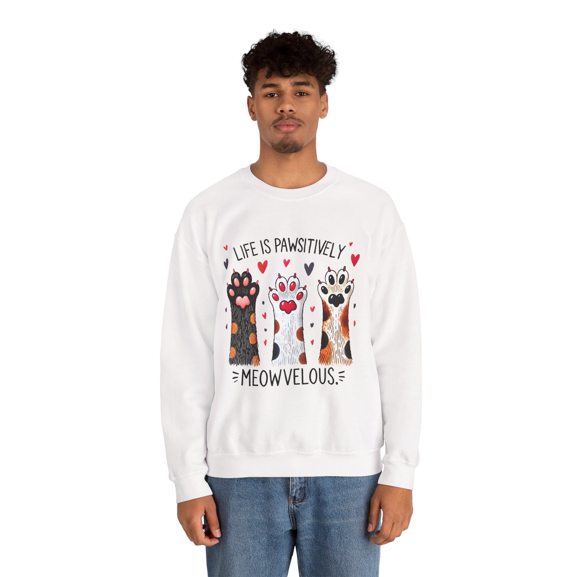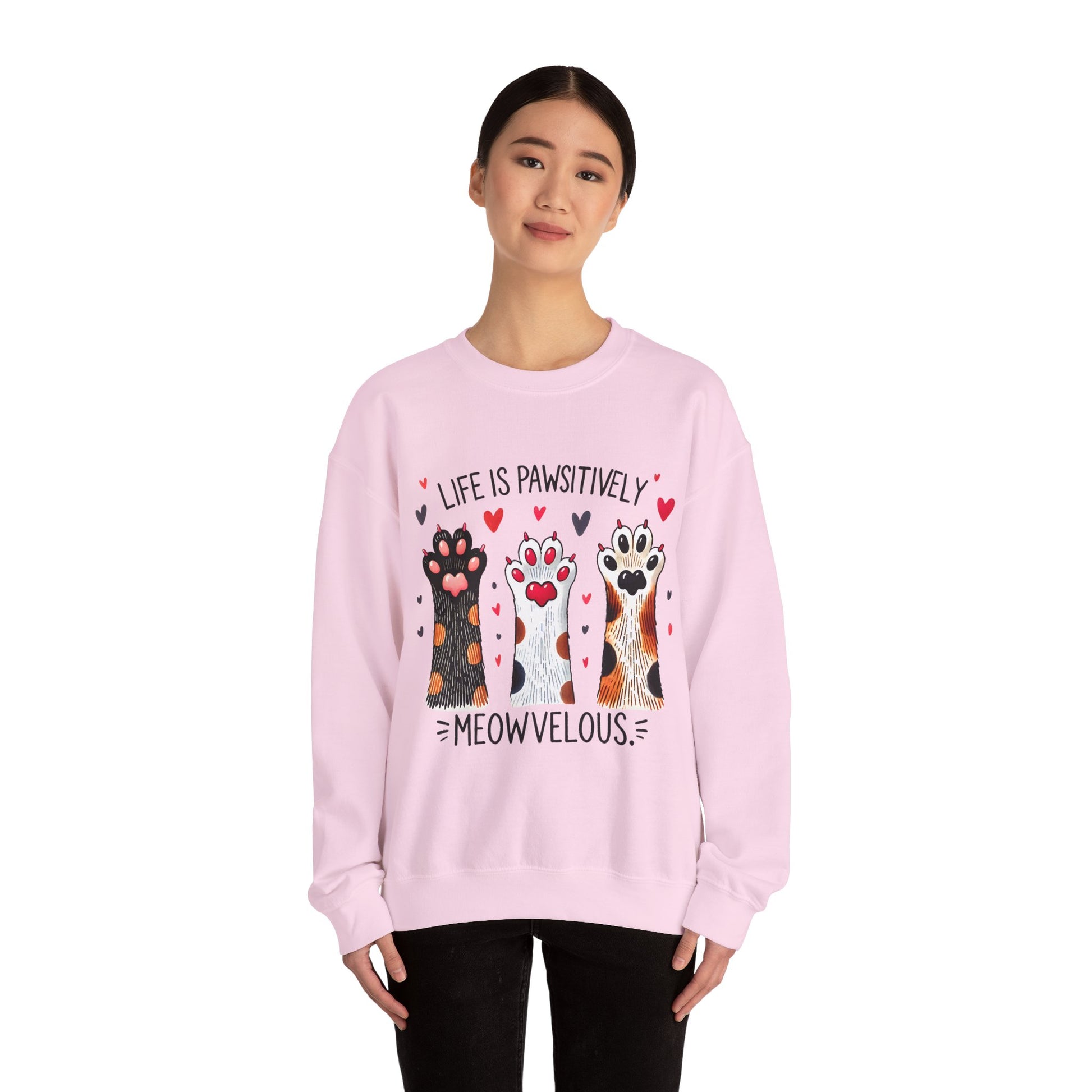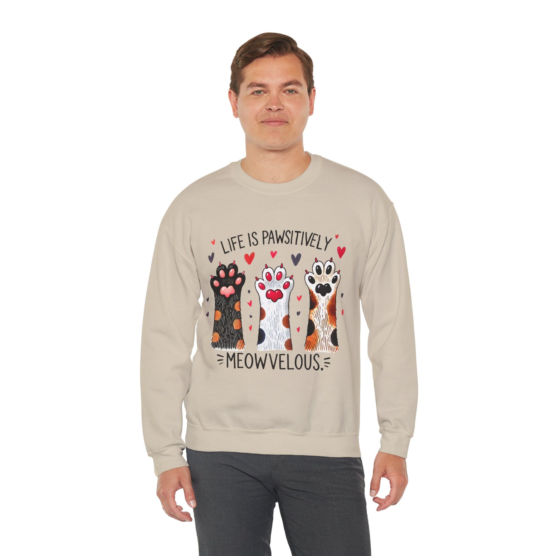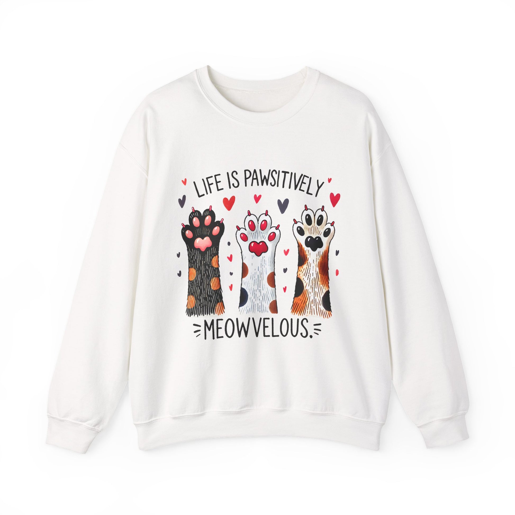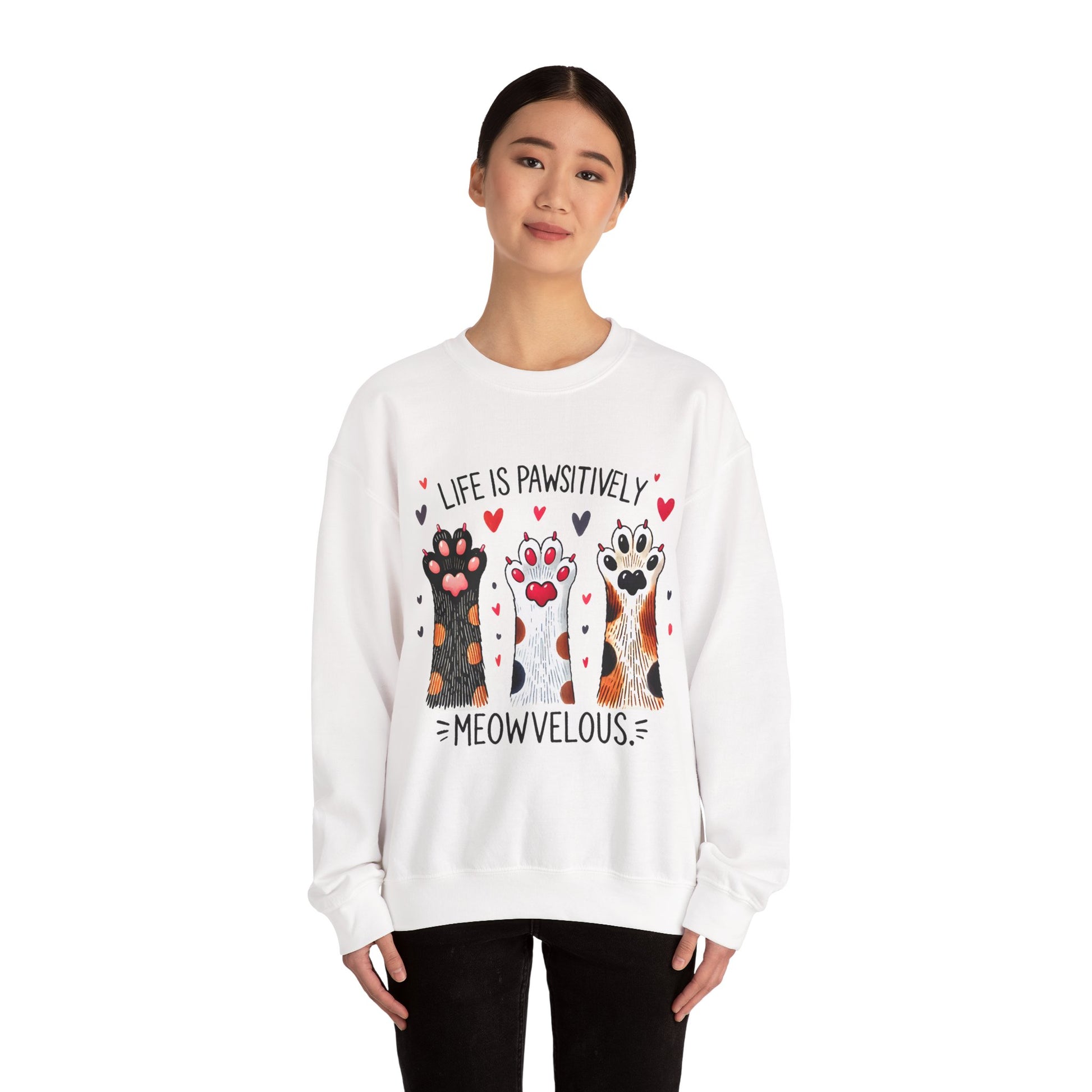 Cat Paw Sweatshirt – "Life Is Pawsitively Meowvelous" Cute Cat Lover Crewneck
