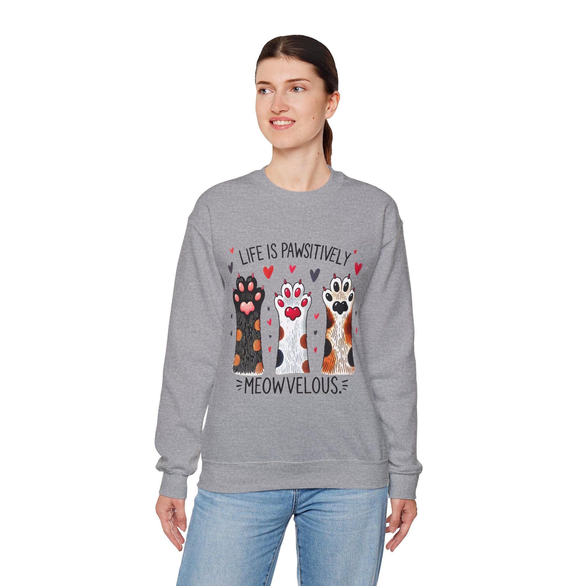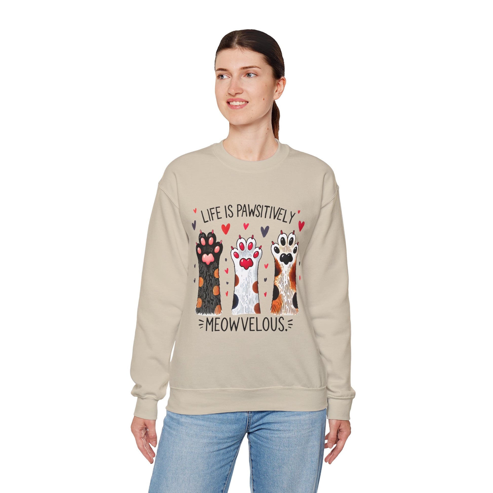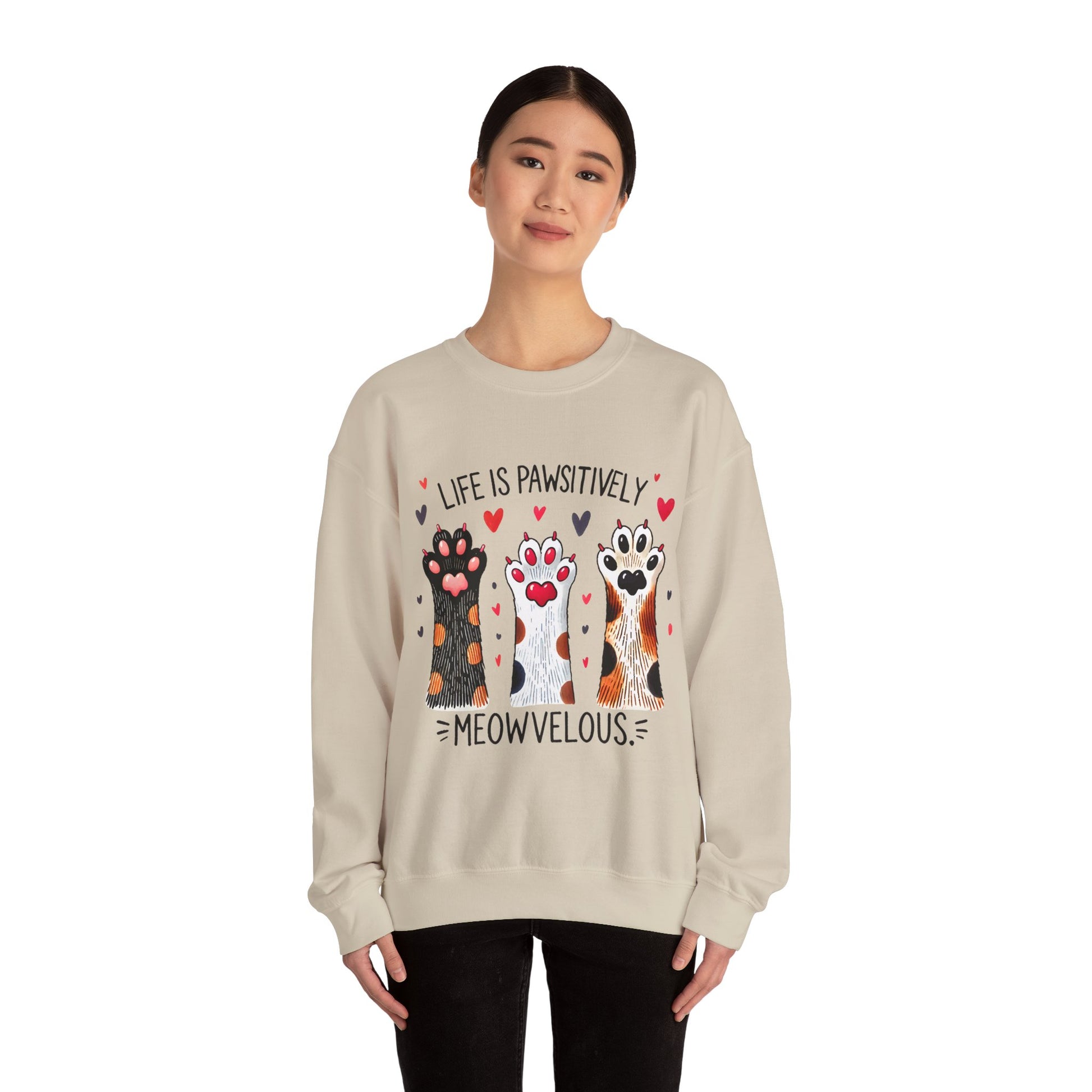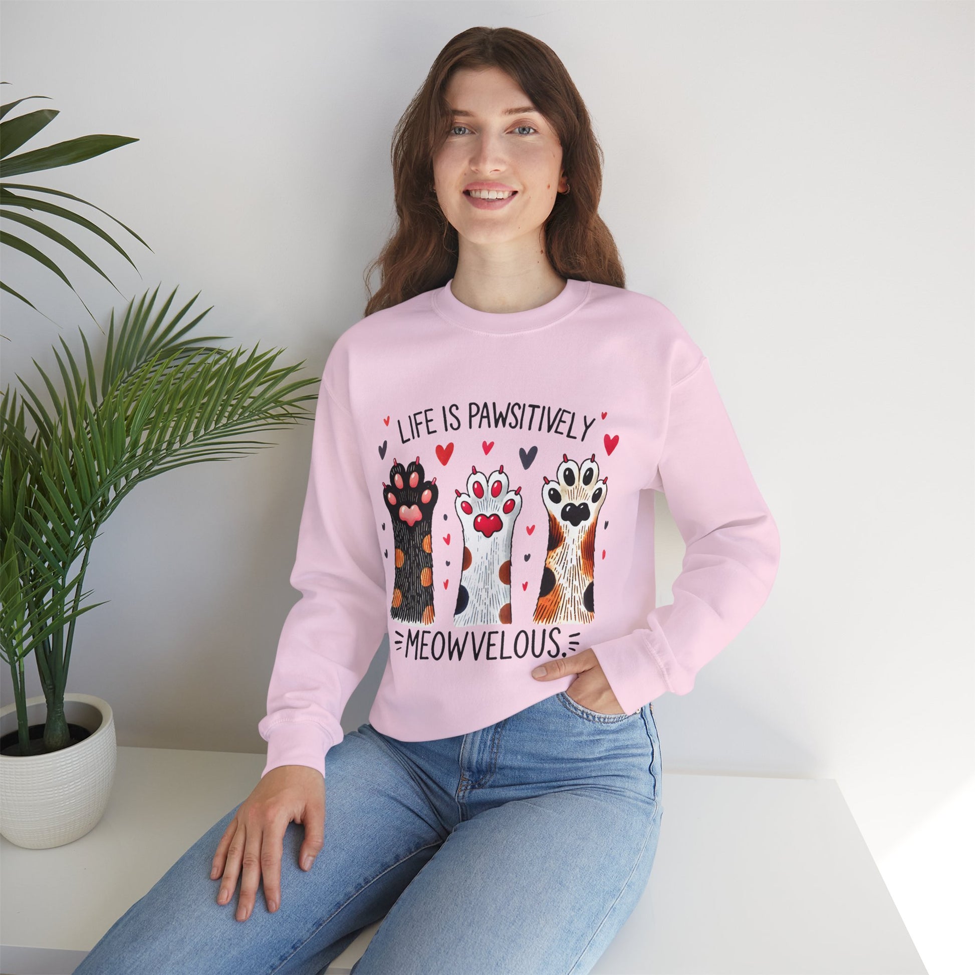Cat Paw Sweatshirt – "Life Is Pawsitively Meowvelous" Cute Cat Lover Crewneck
