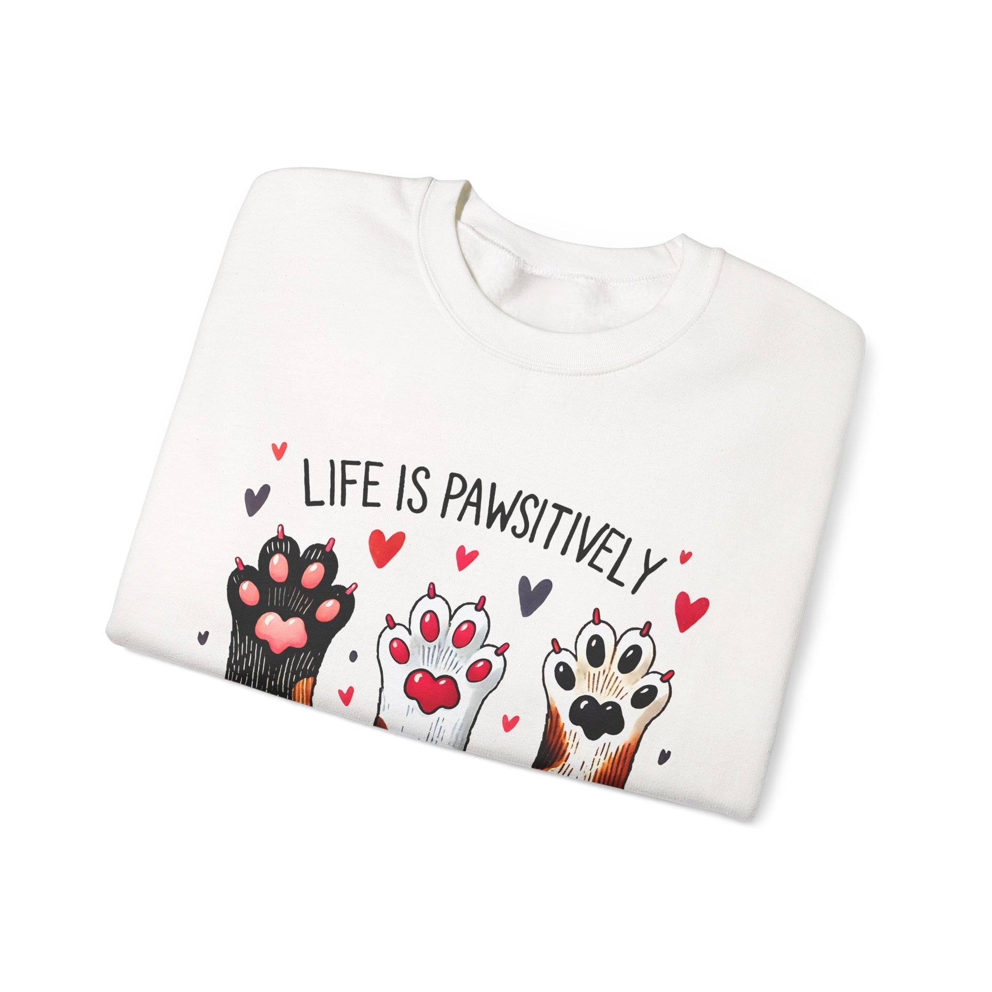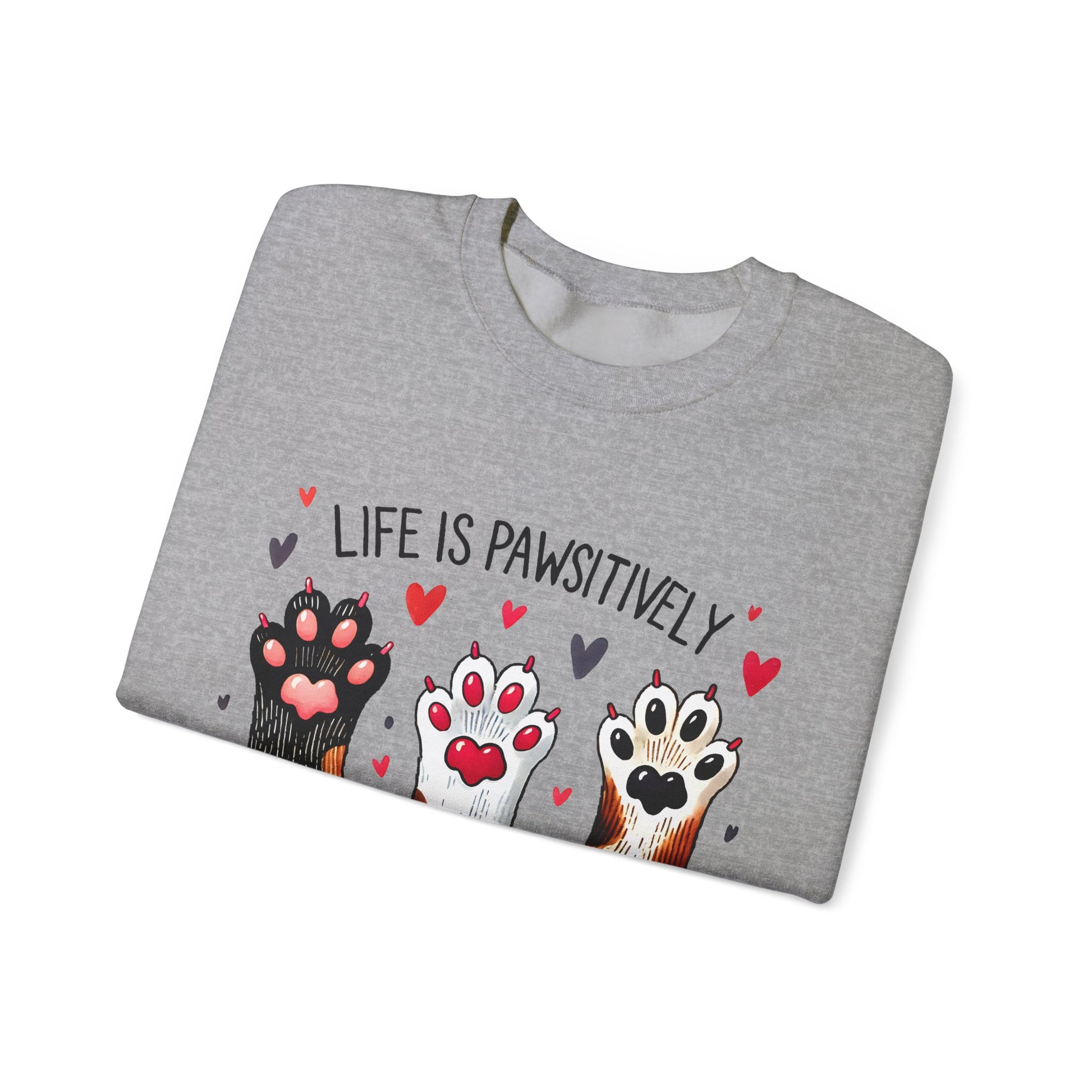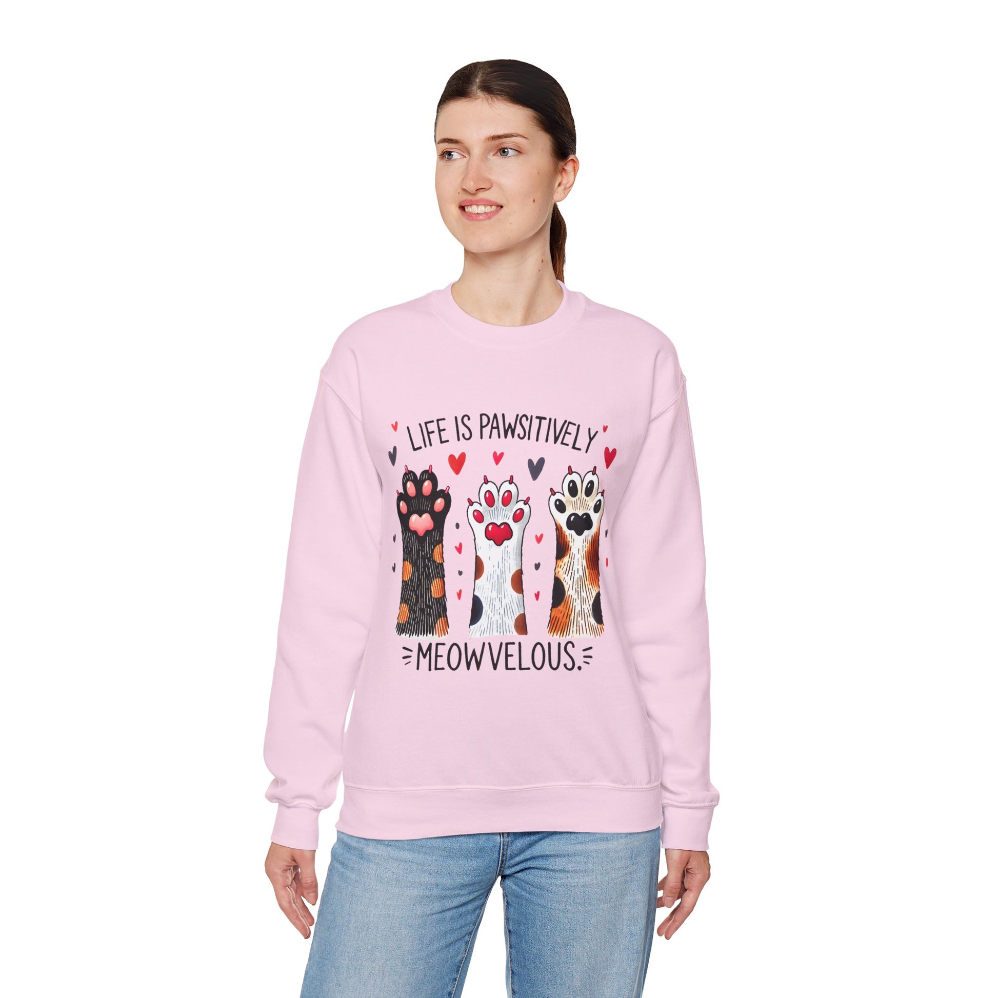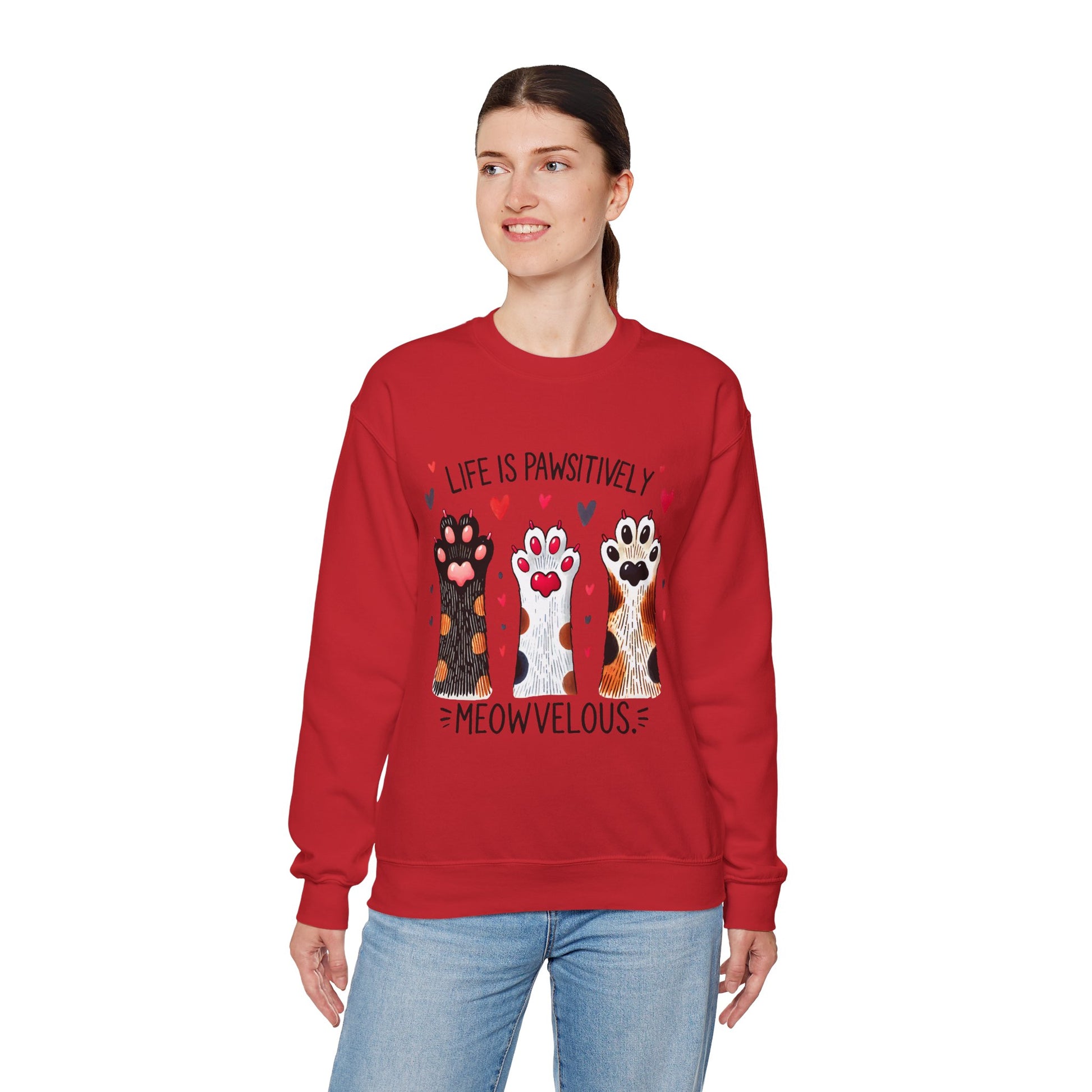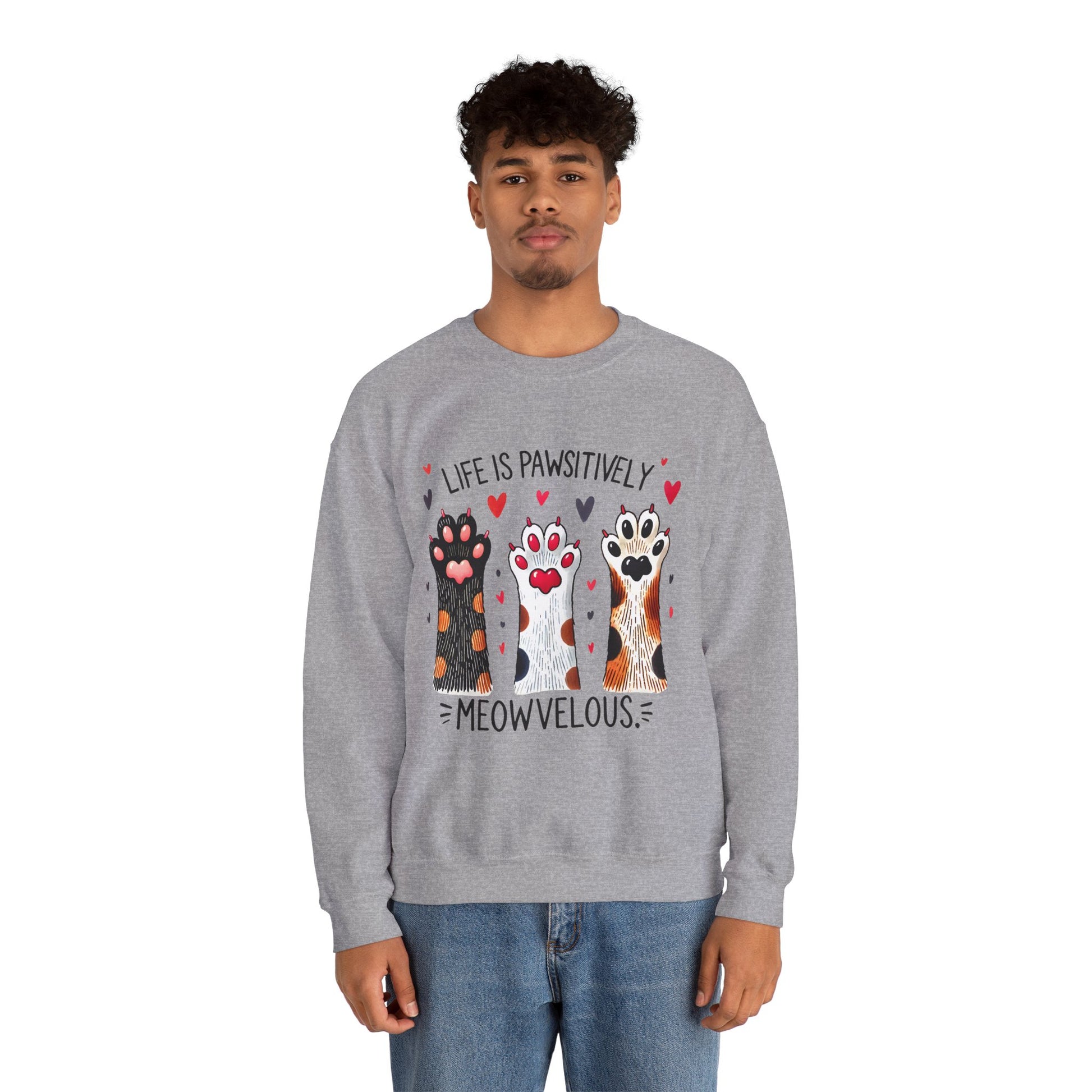 Cat Paw Sweatshirt – "Life Is Pawsitively Meowvelous" Cute Cat Lover Crewneck