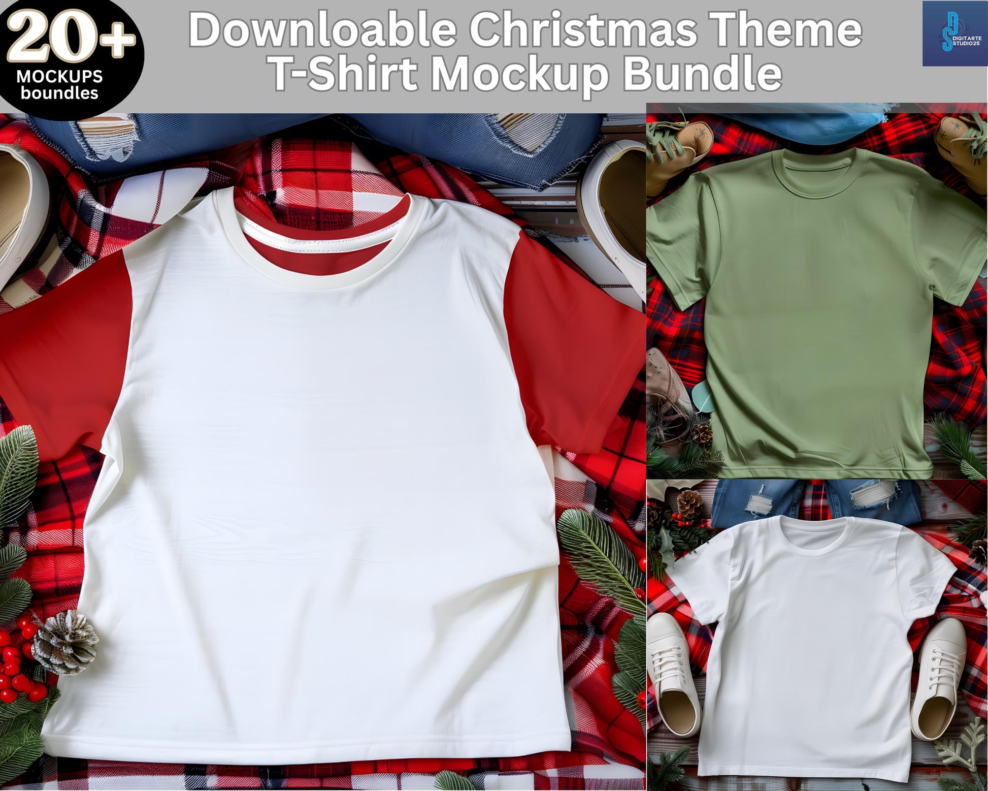 Christmas T-Shirt Mockup Bundle, Festive Holiday Designs (Digital Download)