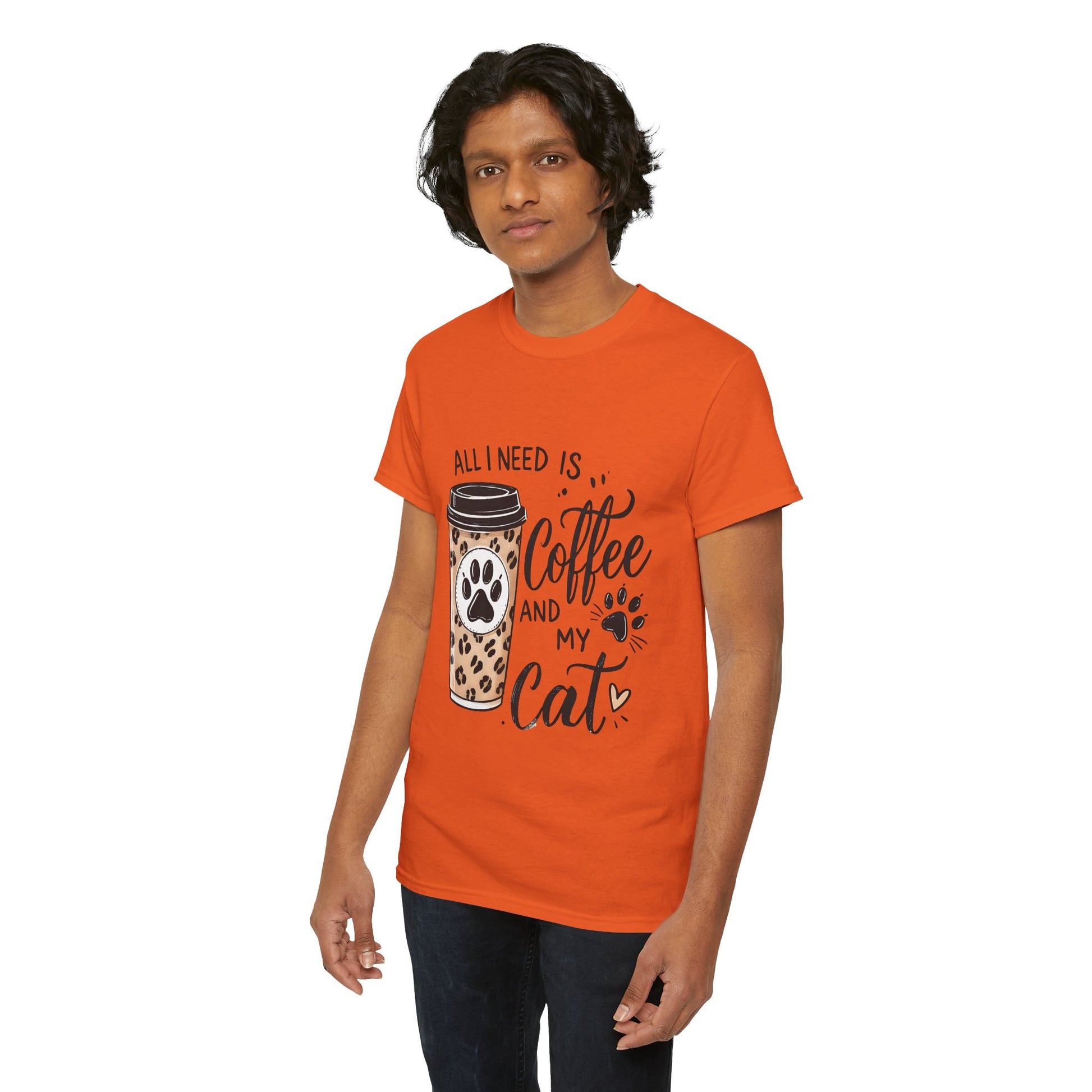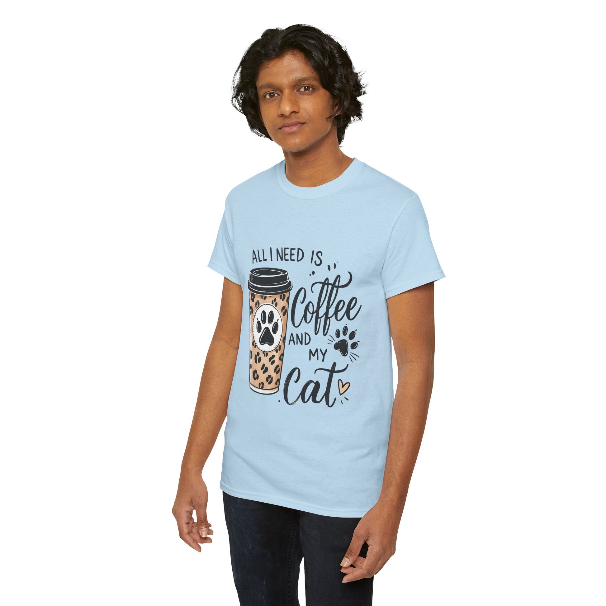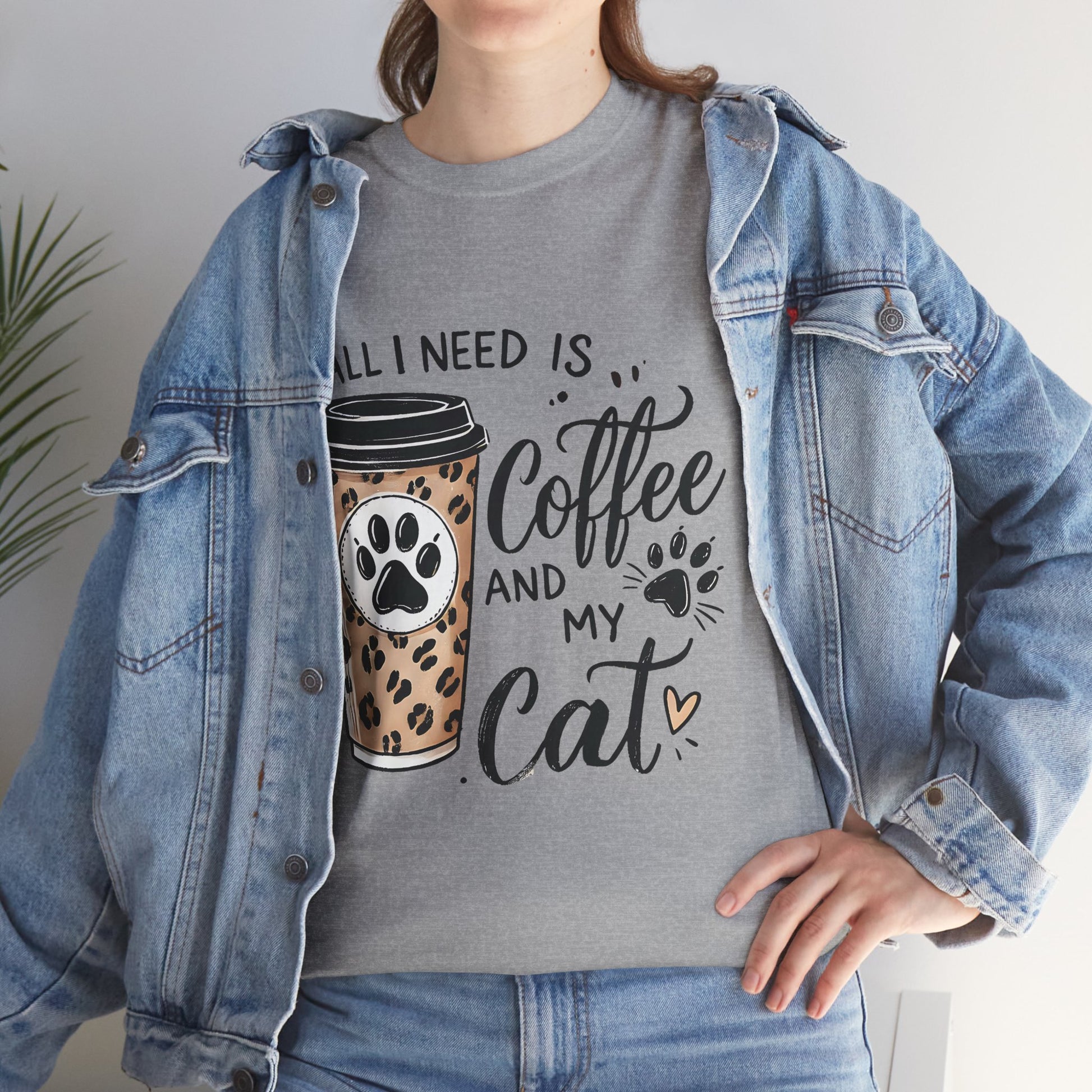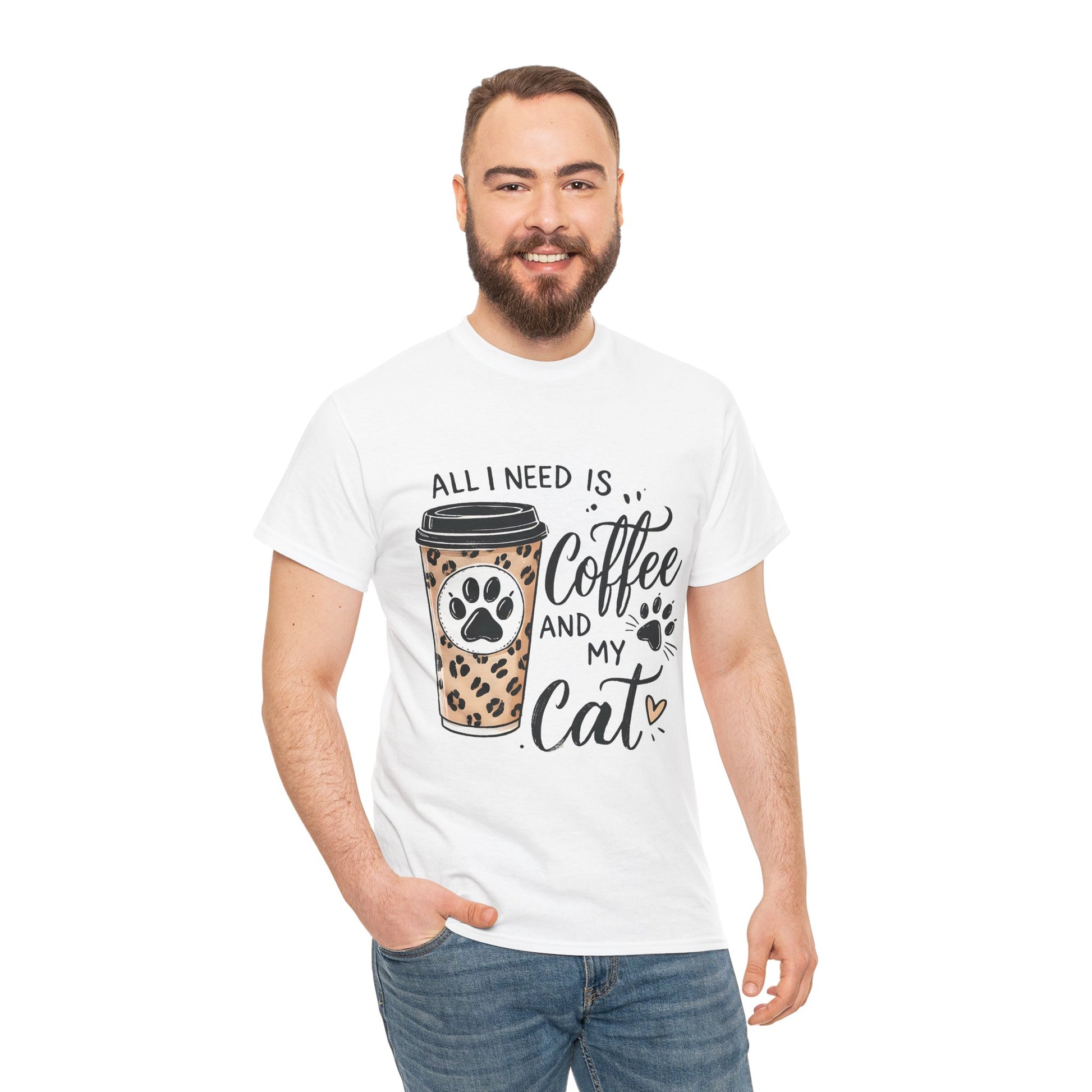 Warm, playful, and quietly confident — this classic tee celebrates slow mornings, cozy laps, and the small ritual that starts the day: coffee and a purr. A soft white crew neck holds a charming design of a leopard-print takeaway cup stamped with a paw and the hand-lettered phrase “All I need is coffee and my cat.” The artwork feels personal, like a note slipped onto the kitchen counter before sunrise. Wear it while cradling a mug, running errands, or settling in for an afternoon of cat cuddles. The relaxed fit and durable knit mean the shirt becomes a lived-in favorite, aging with soft character rather than fading into the background.