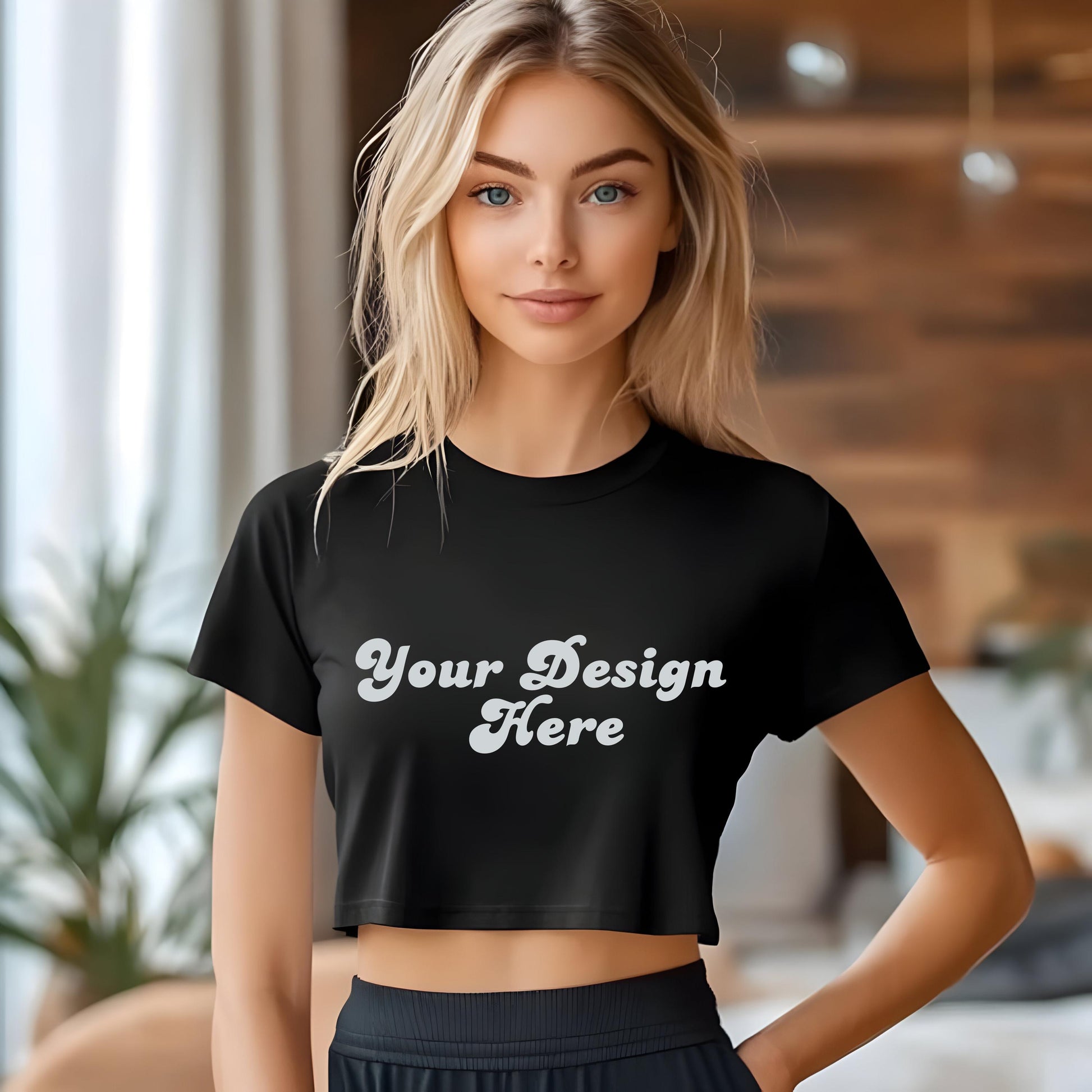 Perfect for showcasing your designs, logos, or artwork on a modern, trendy cropped tee. Make your store or portfolio stand out effortlessly! 💖