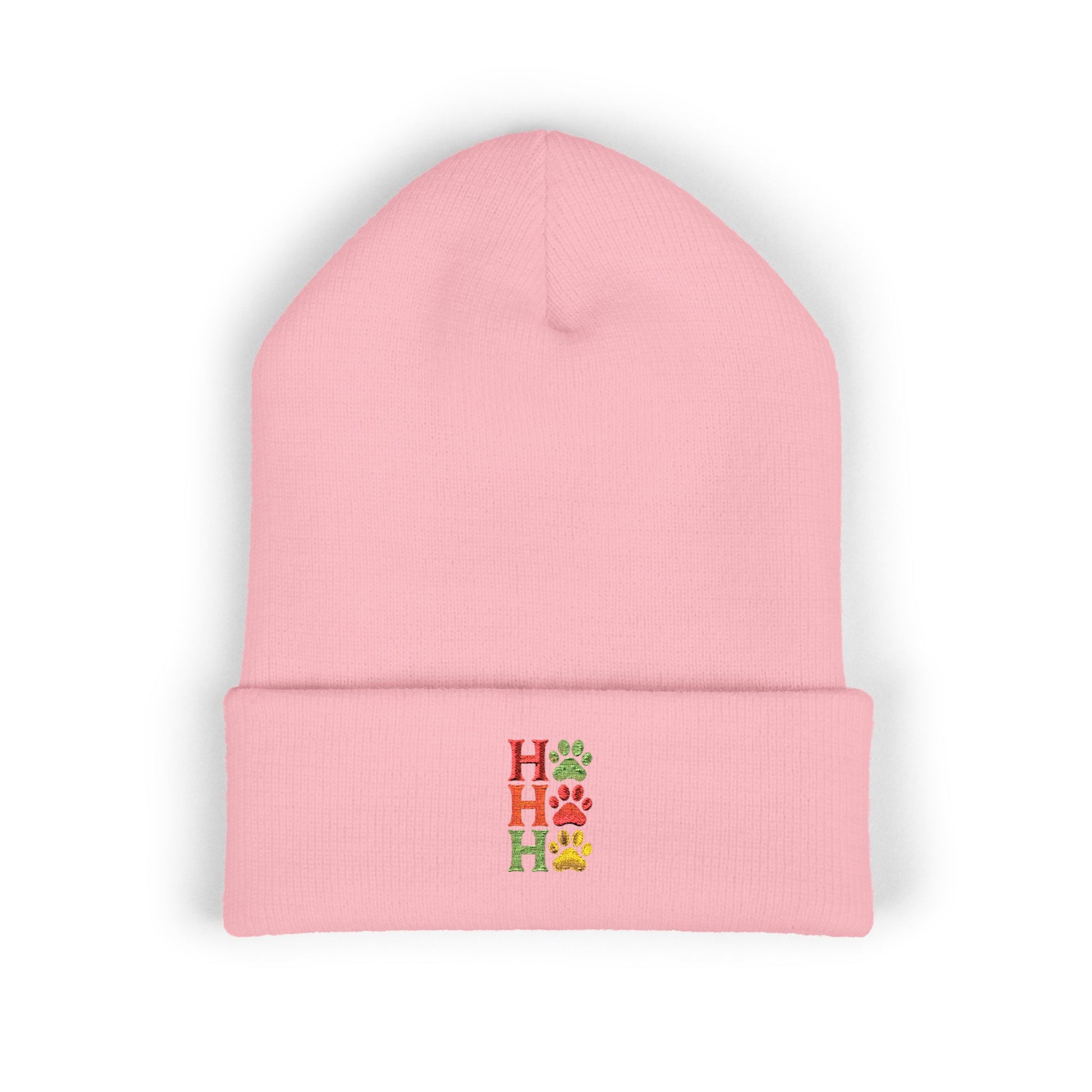 Ho Ho Ho Embroidered Cuffed Beanie — Festive Christmas Knit Hat