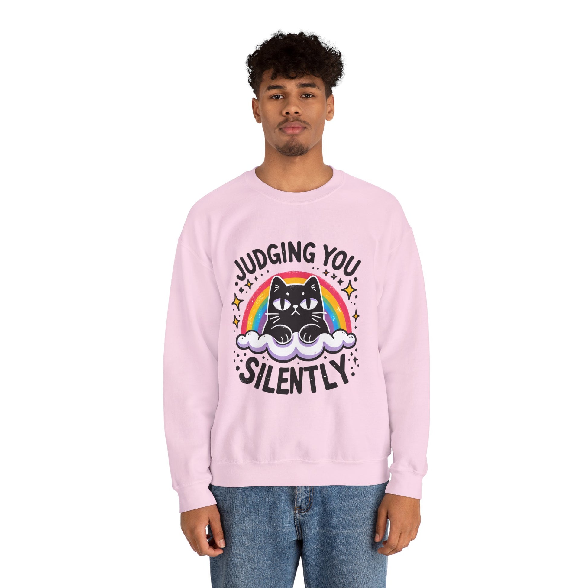 Judging You Silently Sweatshirt — Cute Black Cat Rainbow Crewneck