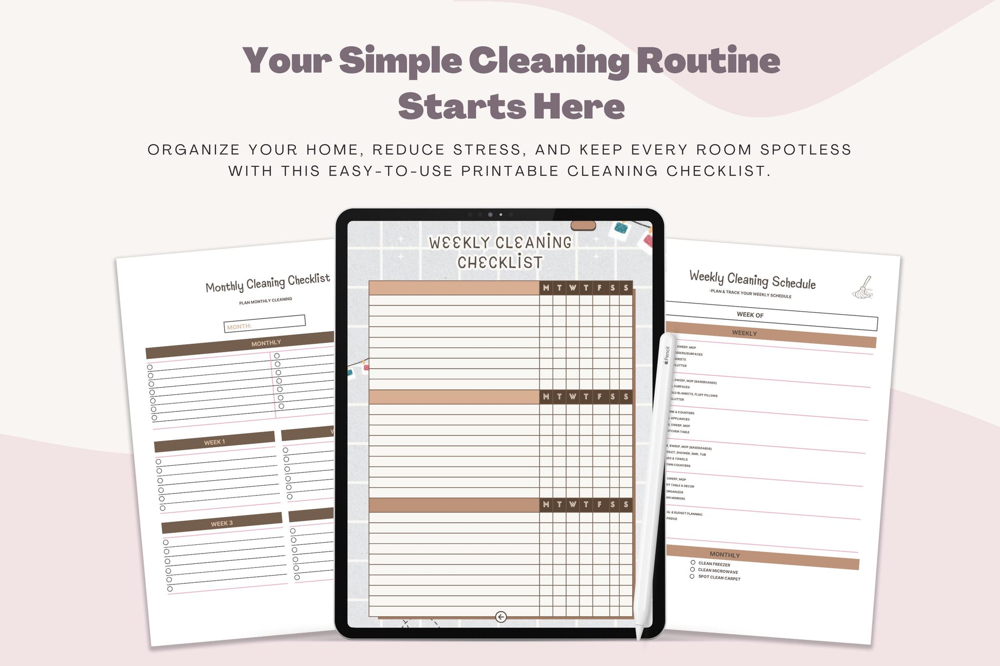 Lista di controllo per la pulizia stampabile: programma giornaliero e settimanale (download digitale)