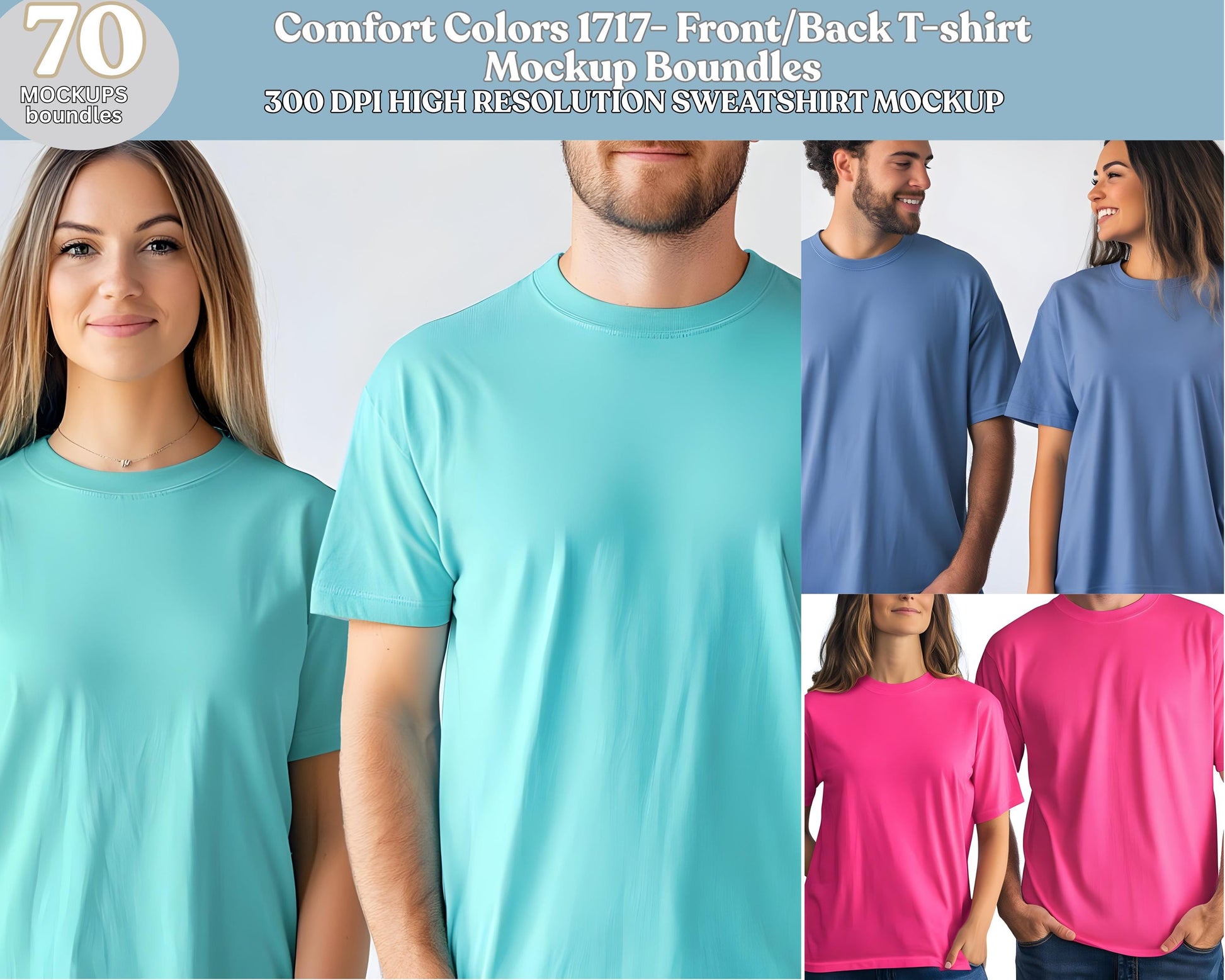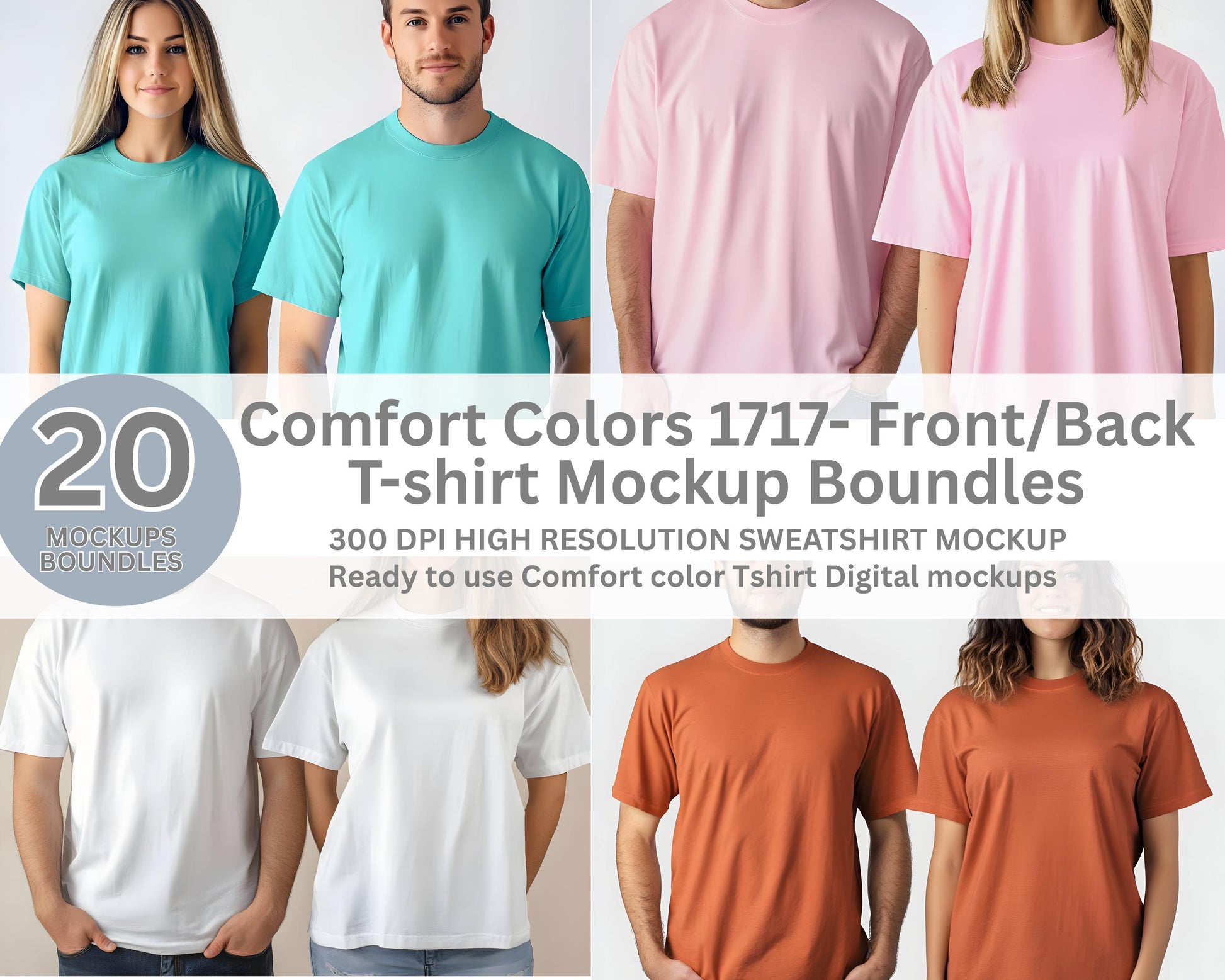 Pacchetto mockup di magliette per coppie Comfort Colors C1717 (download immediato)
