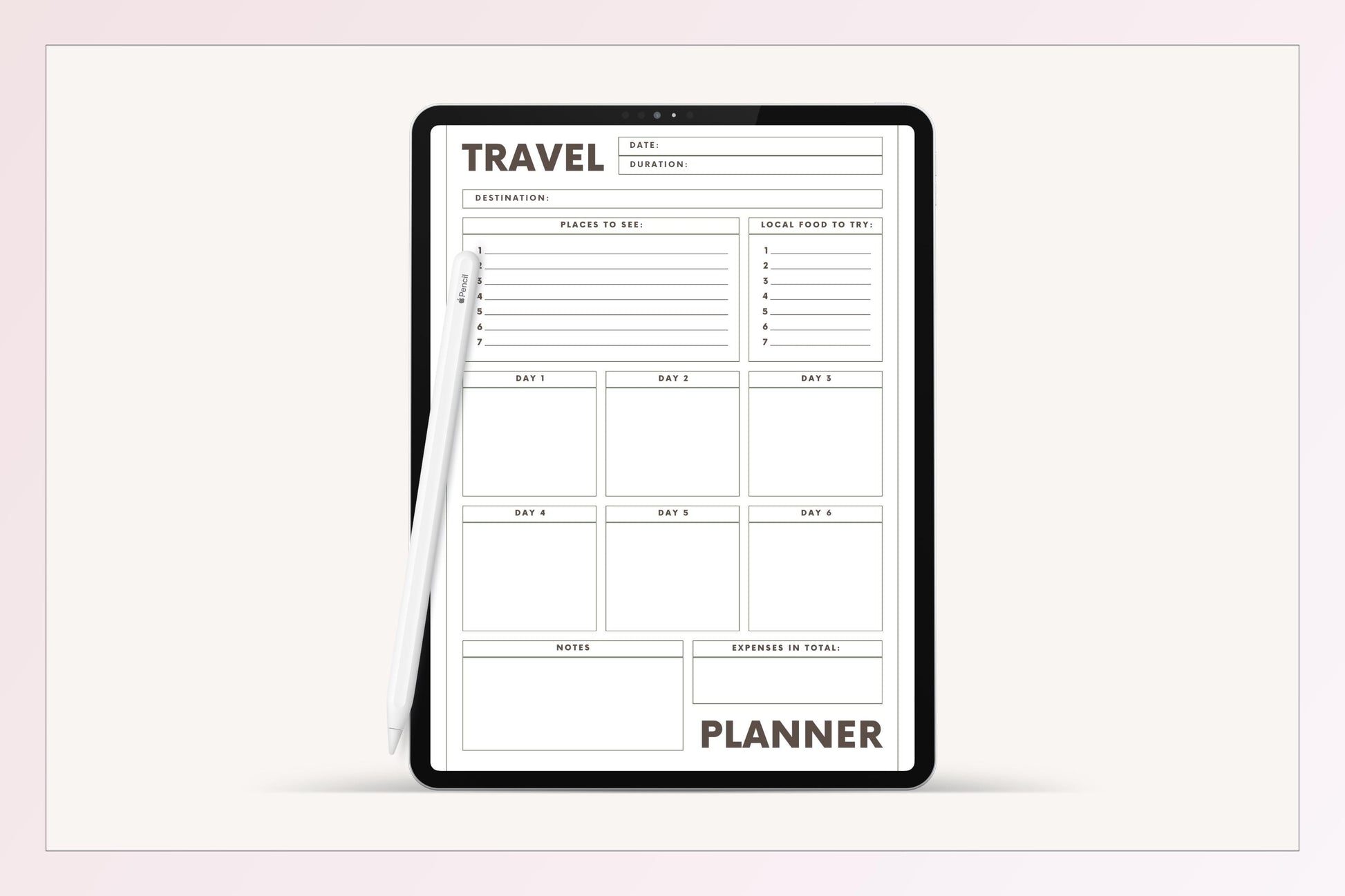 Questo planner digitale dal design accattivante ti aiuta a pianificare ogni fase del tuo viaggio: dalle idee per le destinazioni alle liste di cose da mettere in valigia, dalla definizione del budget alla pianificazione dell'itinerario. È lo strumento perfetto per i viaggiatori che amano rimanere organizzati e ispirati mentre esplorano il mondo.